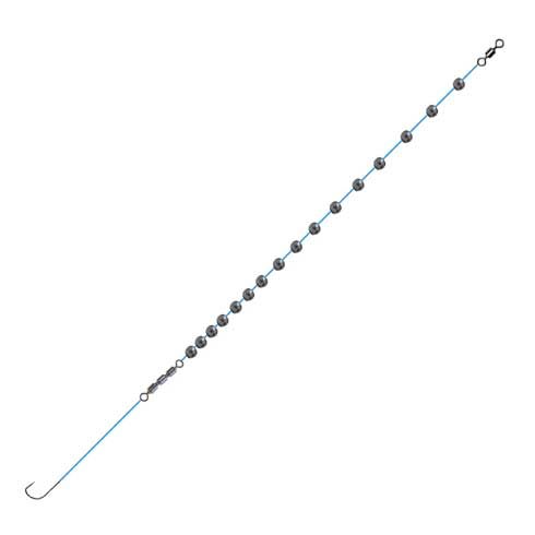 La lenza è semplicissima, per iniziare fin da subito ad avere qualche emozione non vi fossilizzate a fare coroncine impossibili dall’incaglio al fondale facile. Provate semplicemente a mettere 3, 4, 5 pallini del 3,5 (da provare a seconda della corrente fluviale) al filo madre e una girella tripla piccolina con attaccato lo spezzone del terminale (di solito io faccio da 25 cm o meno), una bella peretta spaccata e il gioco è fatto.