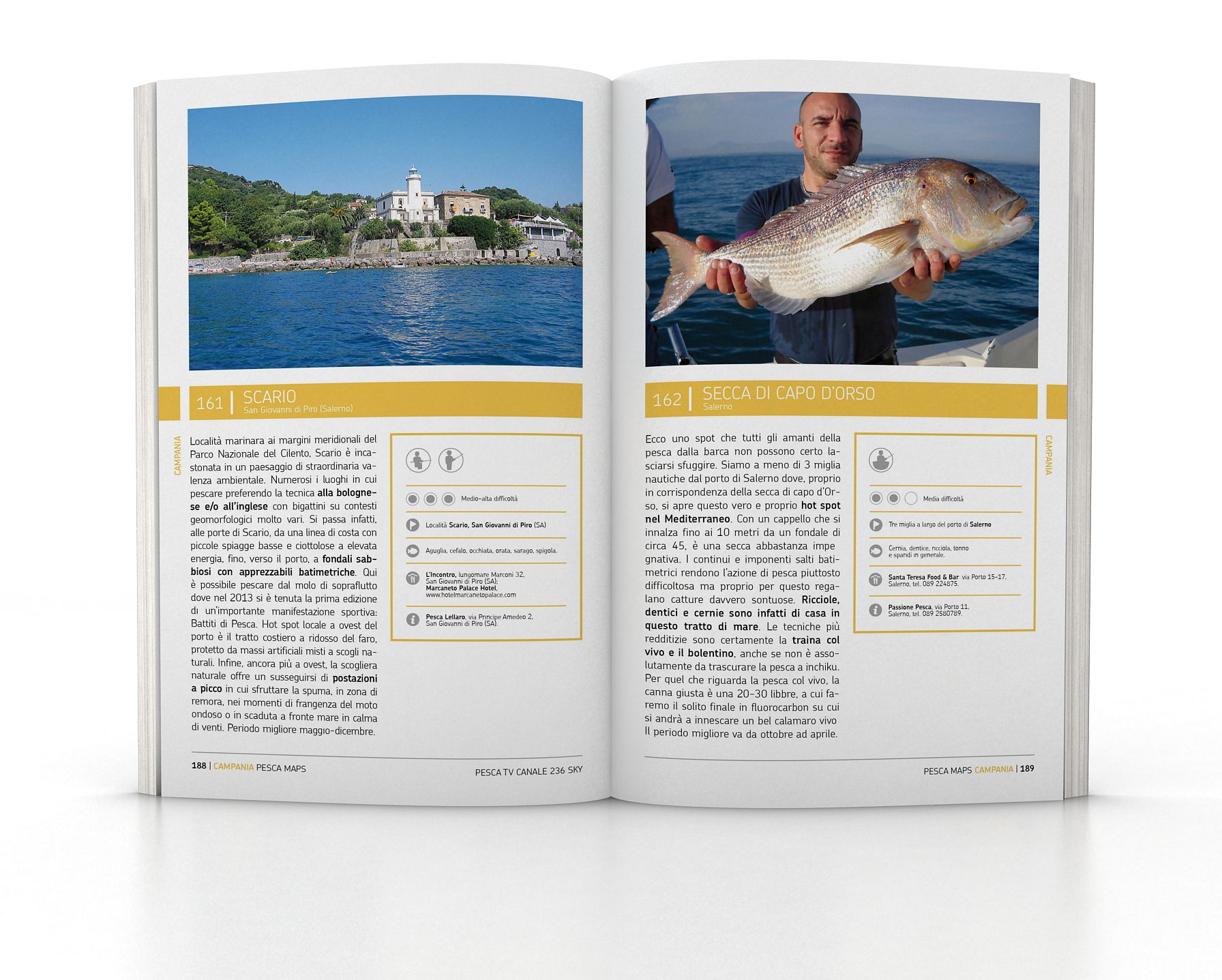 “Dal mare all’acqua dolce, dalla riva o dalla barca per tutte le tecniche di pesca, abbiamo voluto condividere con voi queste mete con l’assoluta certezza che da vere ‘sentinelle’ dell’ambiente, tutelerete e proteggerete questi luoghi per le future generazioni” scrivono Matteo De Falco e Alberto Salvini, Direttore editoriale e Vicedirettore editoriale di Pesca Tv, con una raccomandazione particolare alla salvaguardia del territorio.